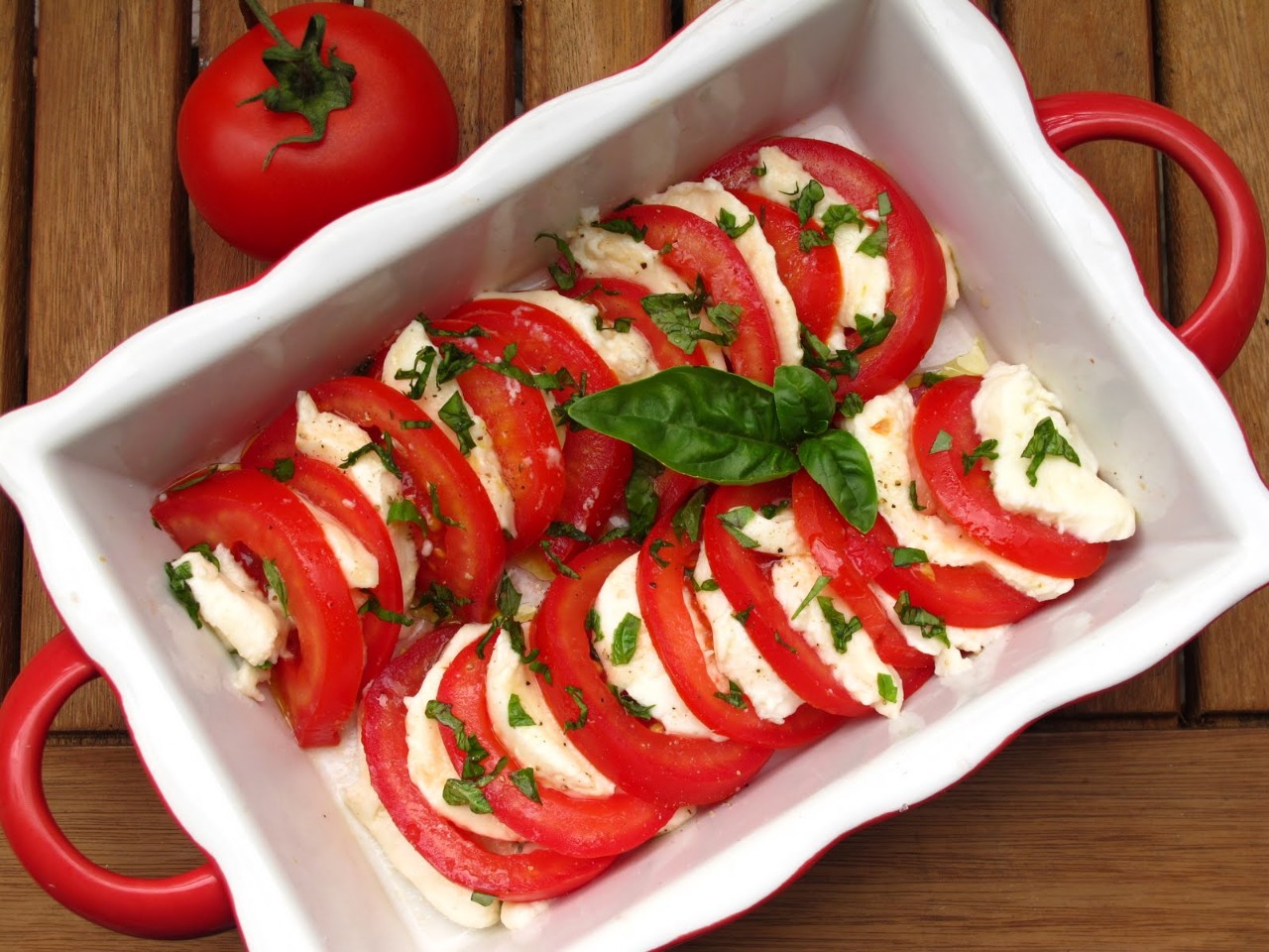 - Add the olive oil without drowning in tomatoes and mozzarella